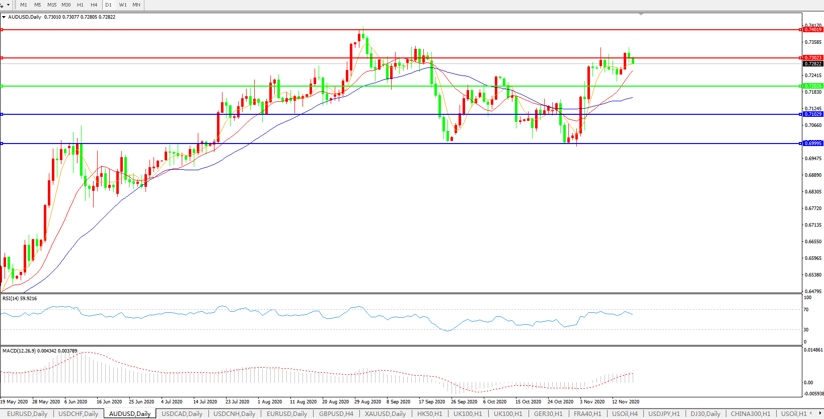 压制位:0.7300 0.7400
