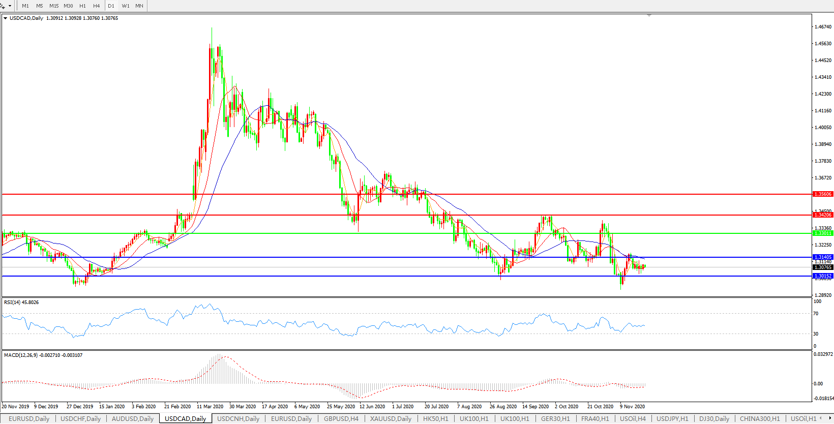 美元兑加元USDCAD 日线图: