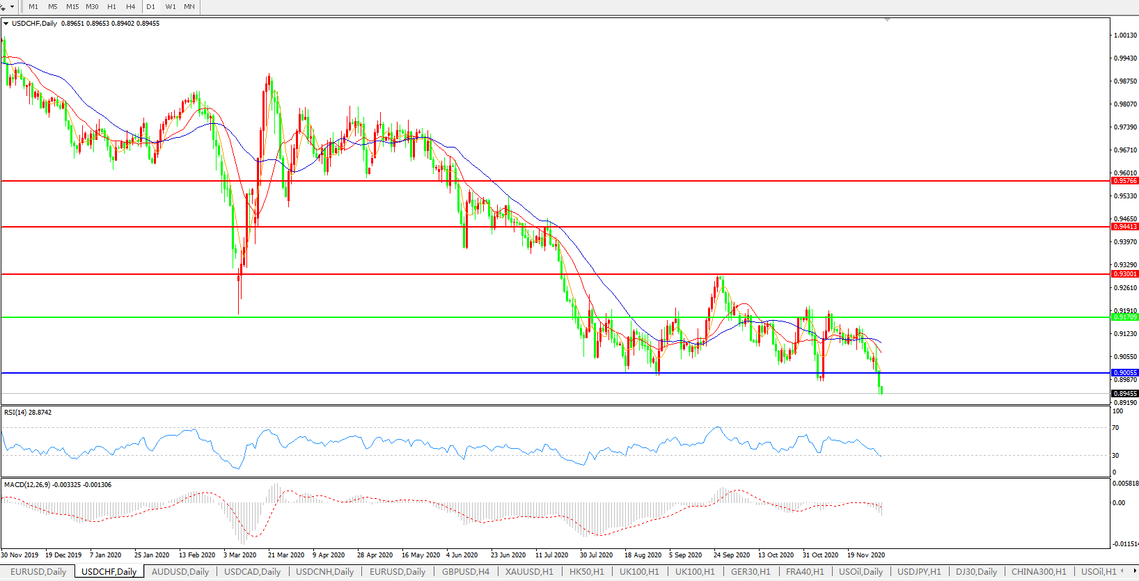美元兑瑞郎USDCHF 日线图: