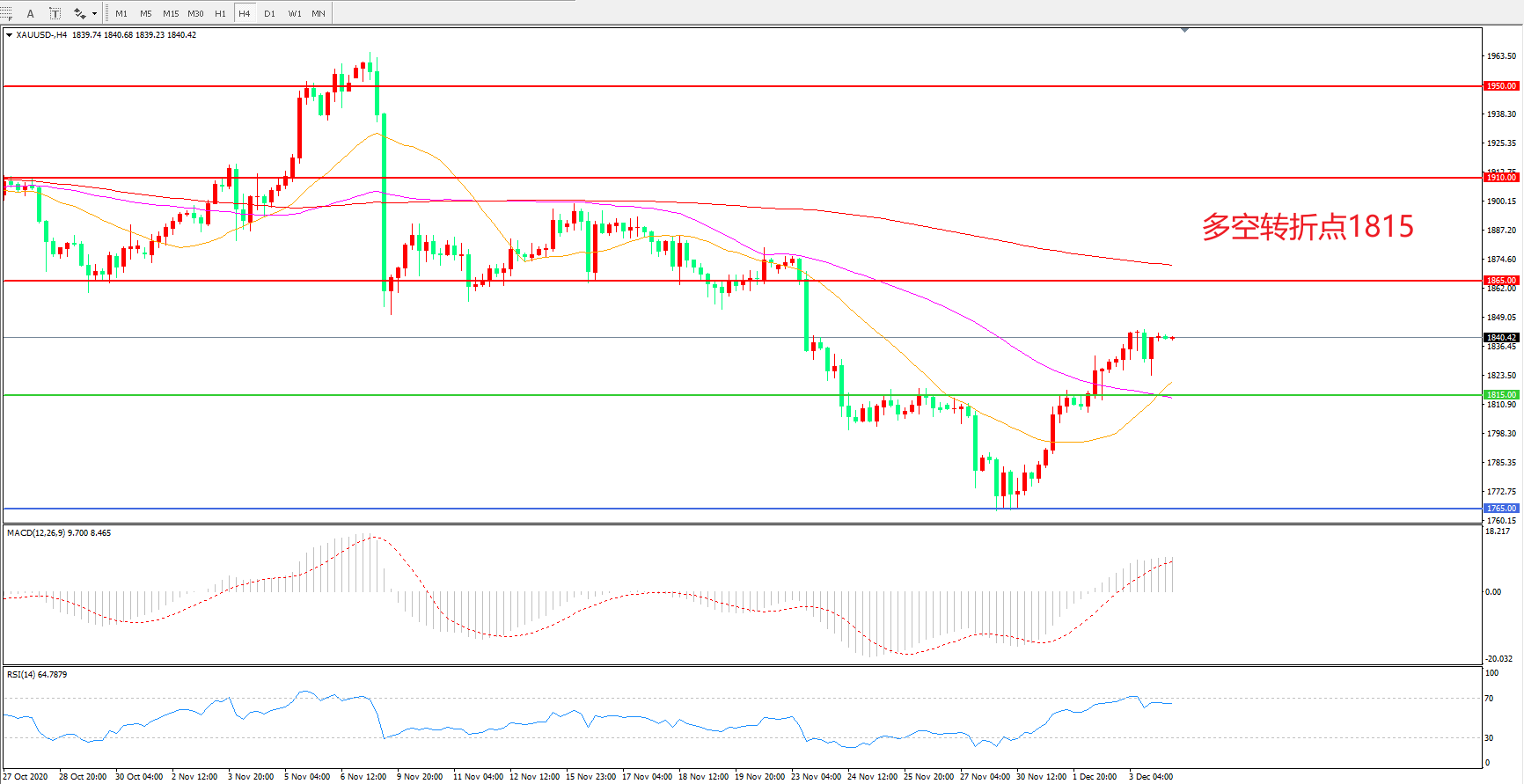 多空转折点:1815.00