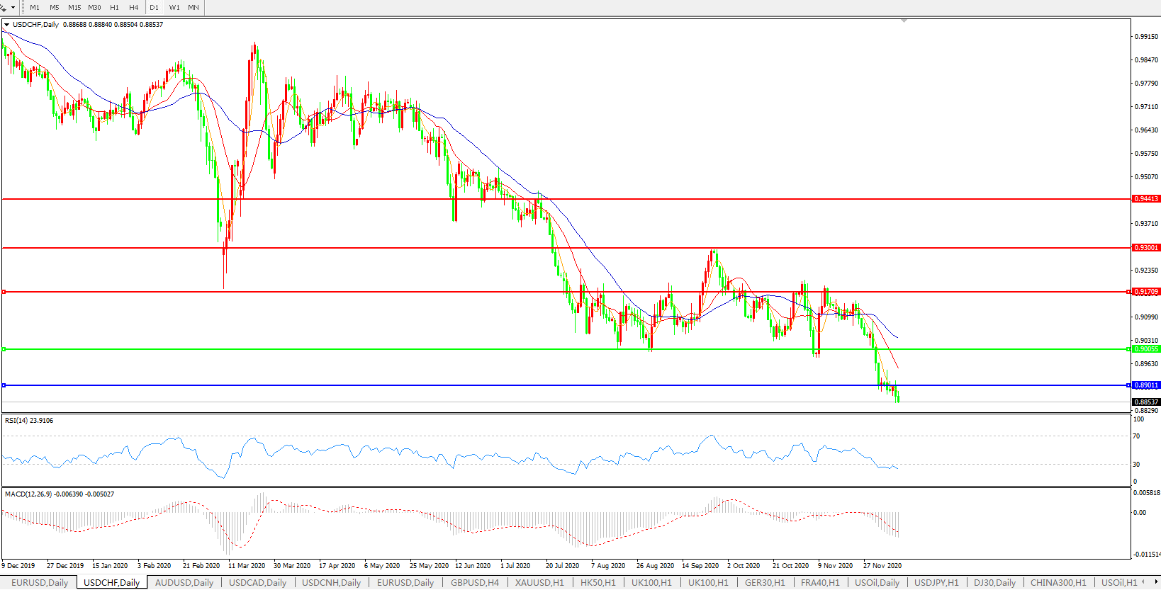 美元兑瑞郎USDCHF    日线图: