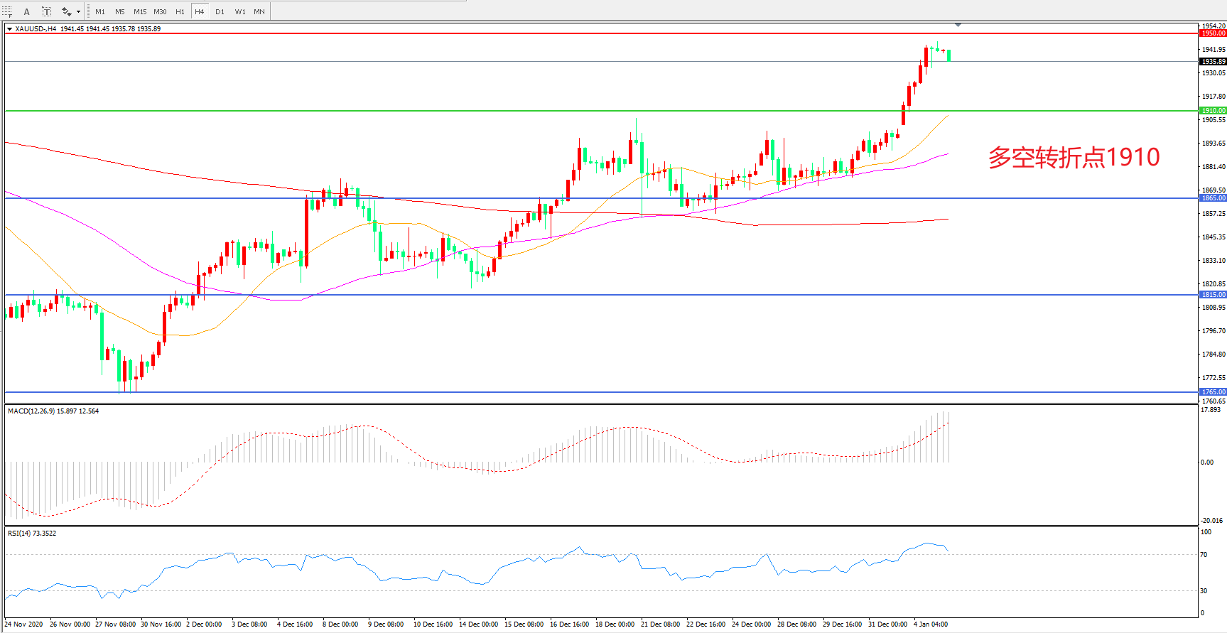 现货黄金XAU/USD 4小时图