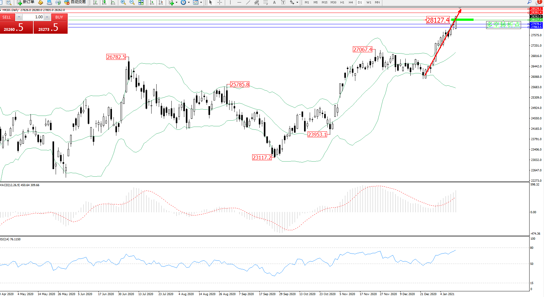 恒指HK50 ——日K线图显示: