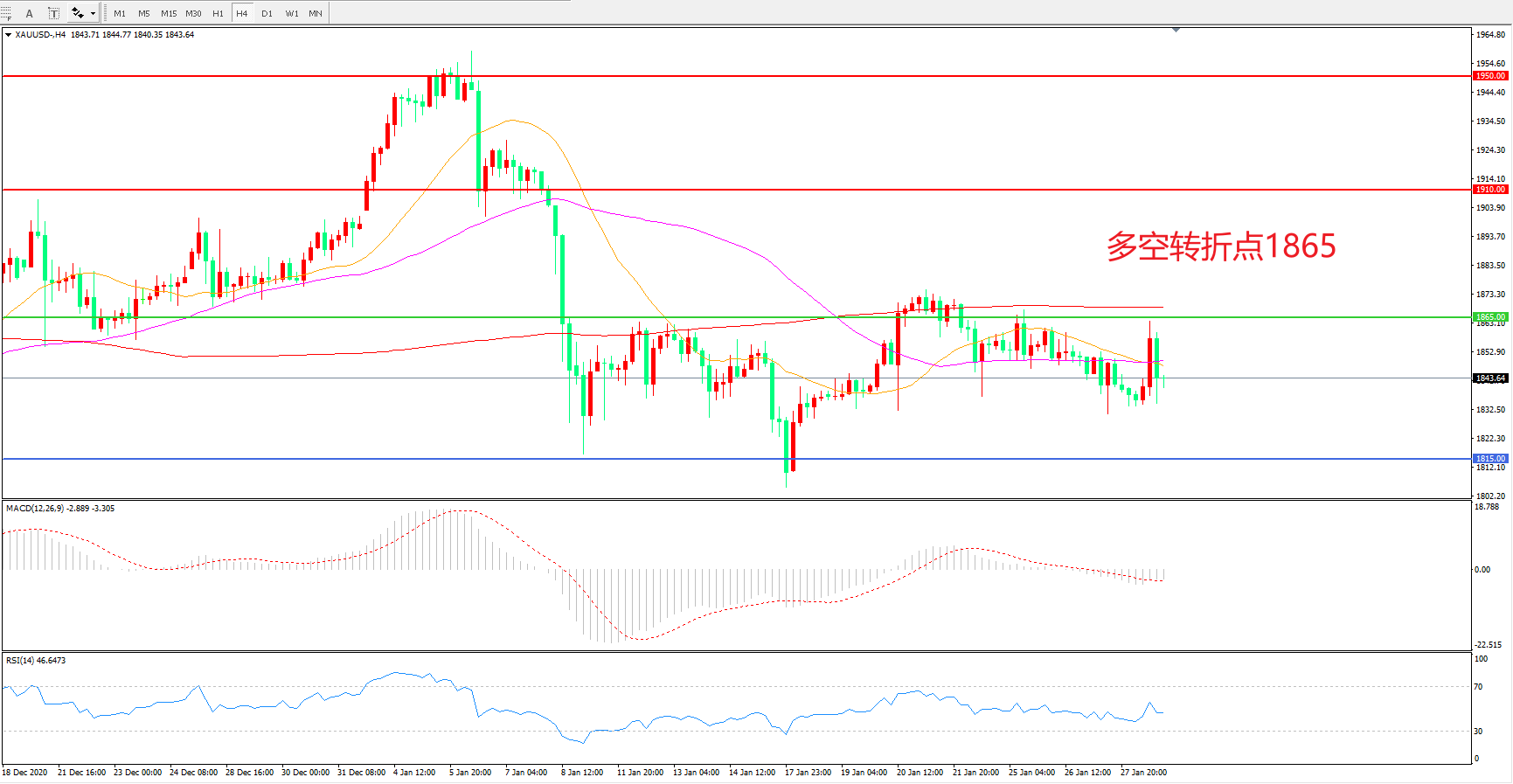 交易策略:在1865.00之下看跌,目标1815.00 1765.00