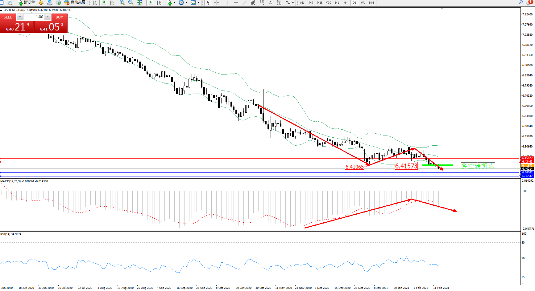 备选策略:6.41573上方看涨,目标6.43443、6.45027