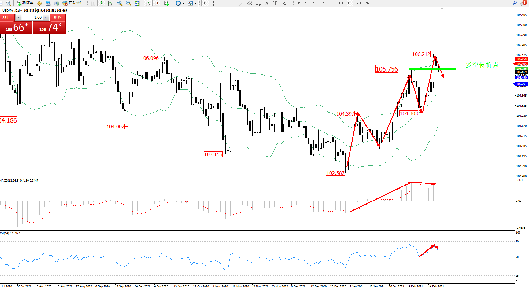 多空转折点:105.756