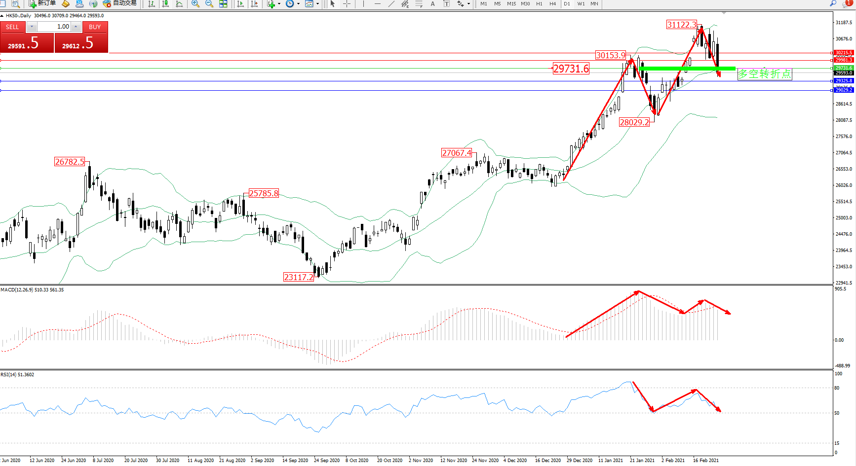 恒指HK50 ——日K线图显示: