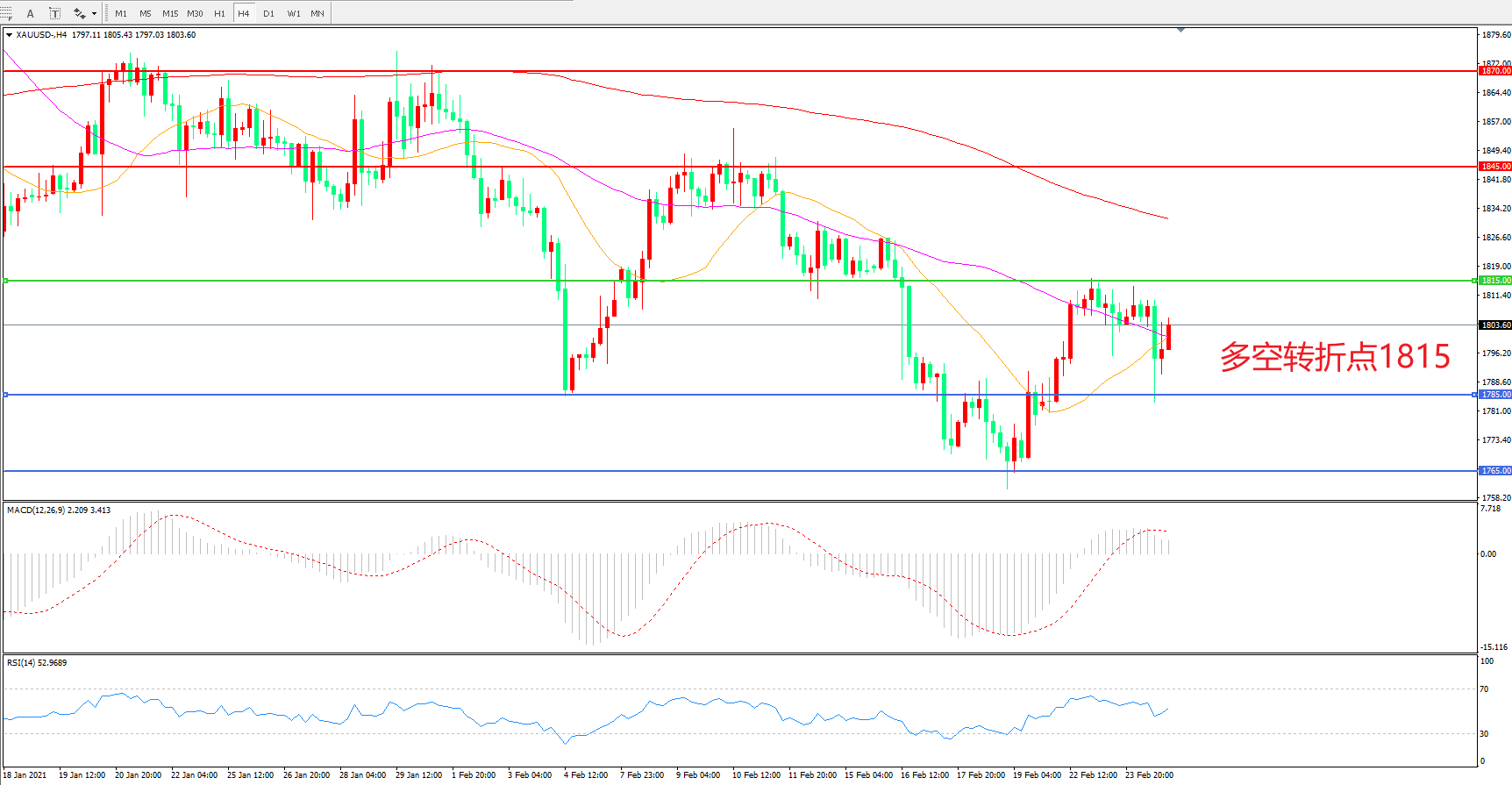 交易策略:在1815.00之下看跌,目标1785.00 1765.00