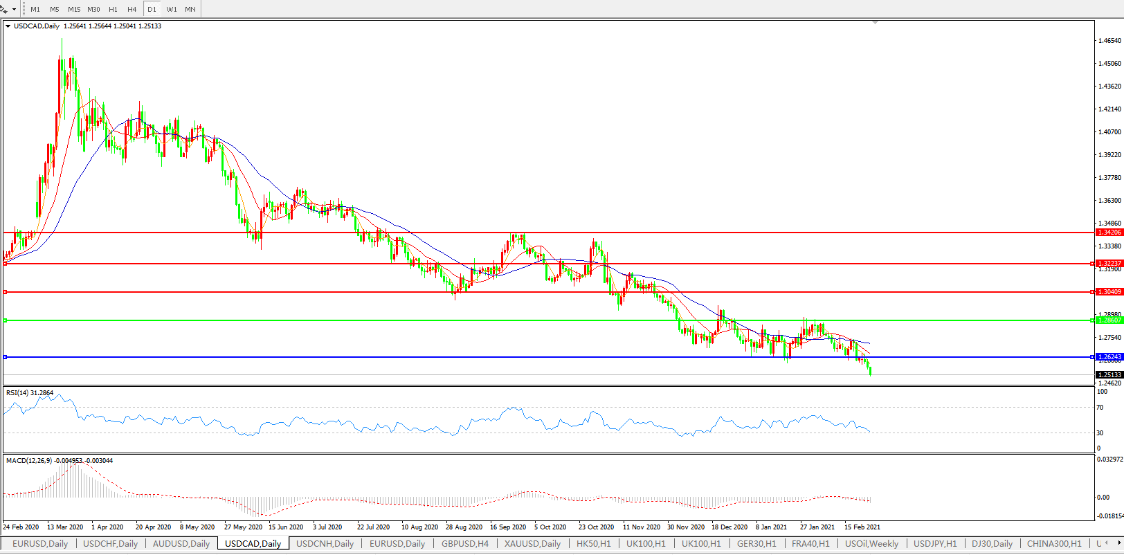 美元兑加元USDCAD 日线图: