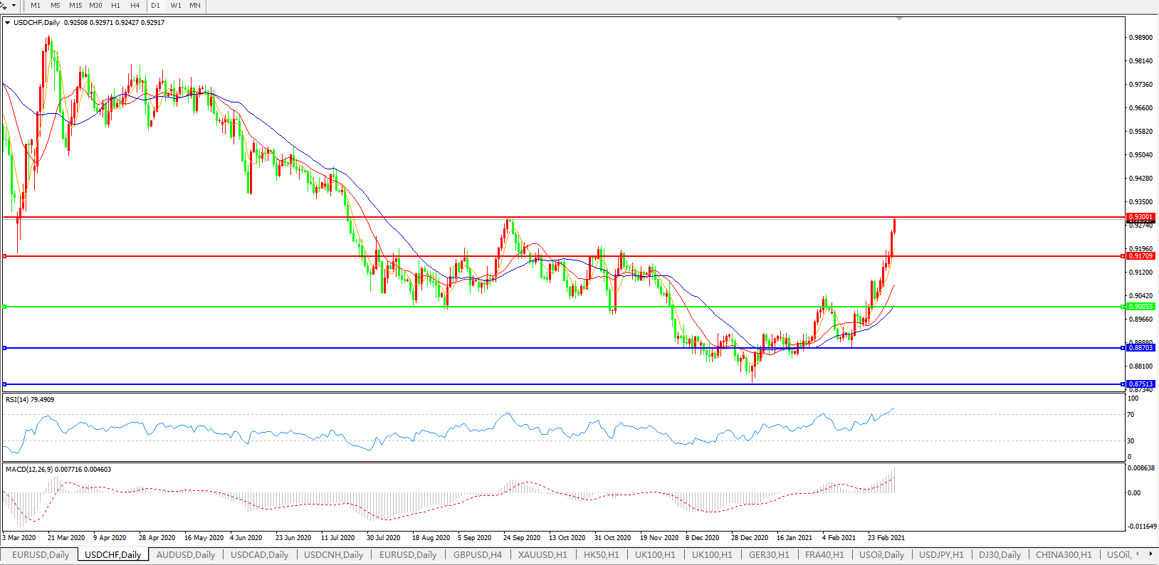 美元兑瑞郎USDCHF    日线图: