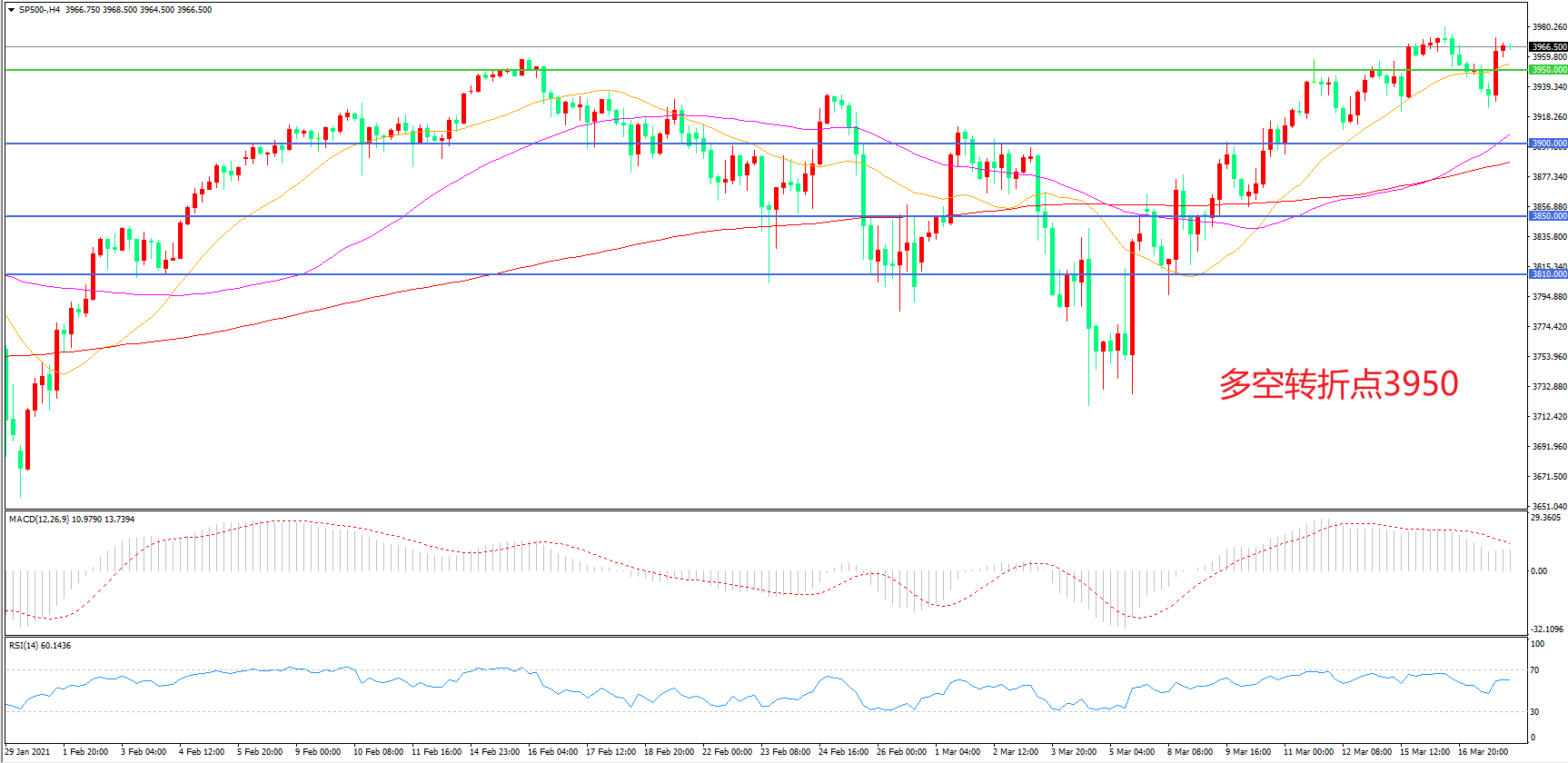 多空转折点:3950.00
