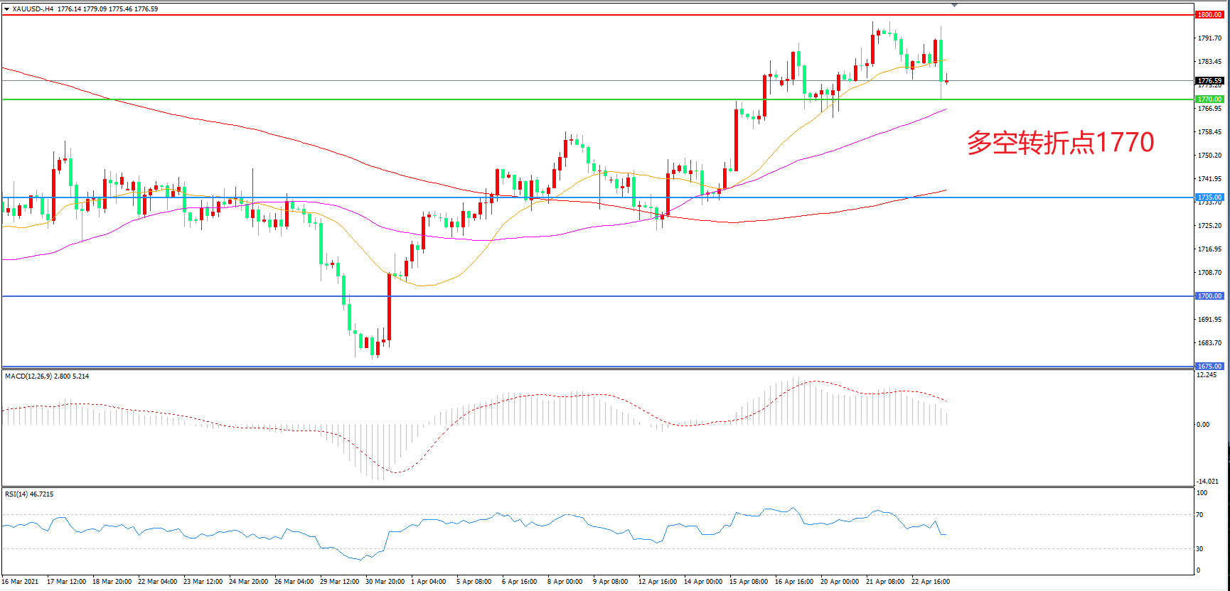 交易策略:在1770.00之上看涨,目标1800.00 1840.00