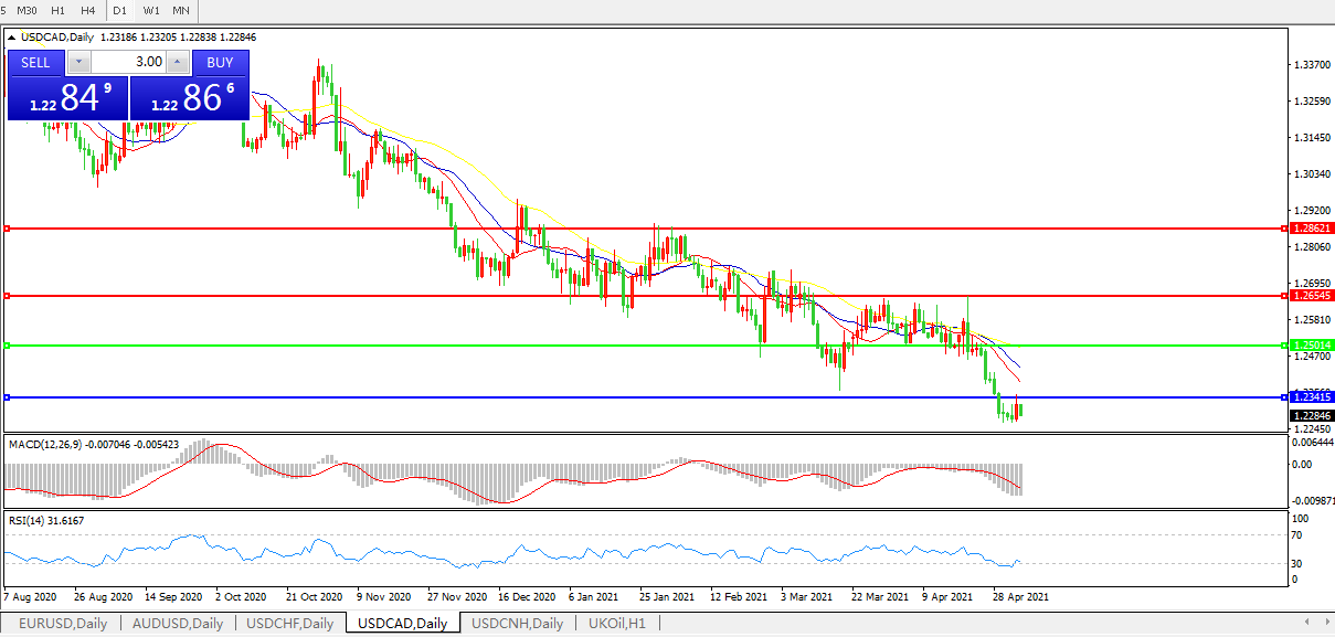 美元兑加元USDCAD 日线图: