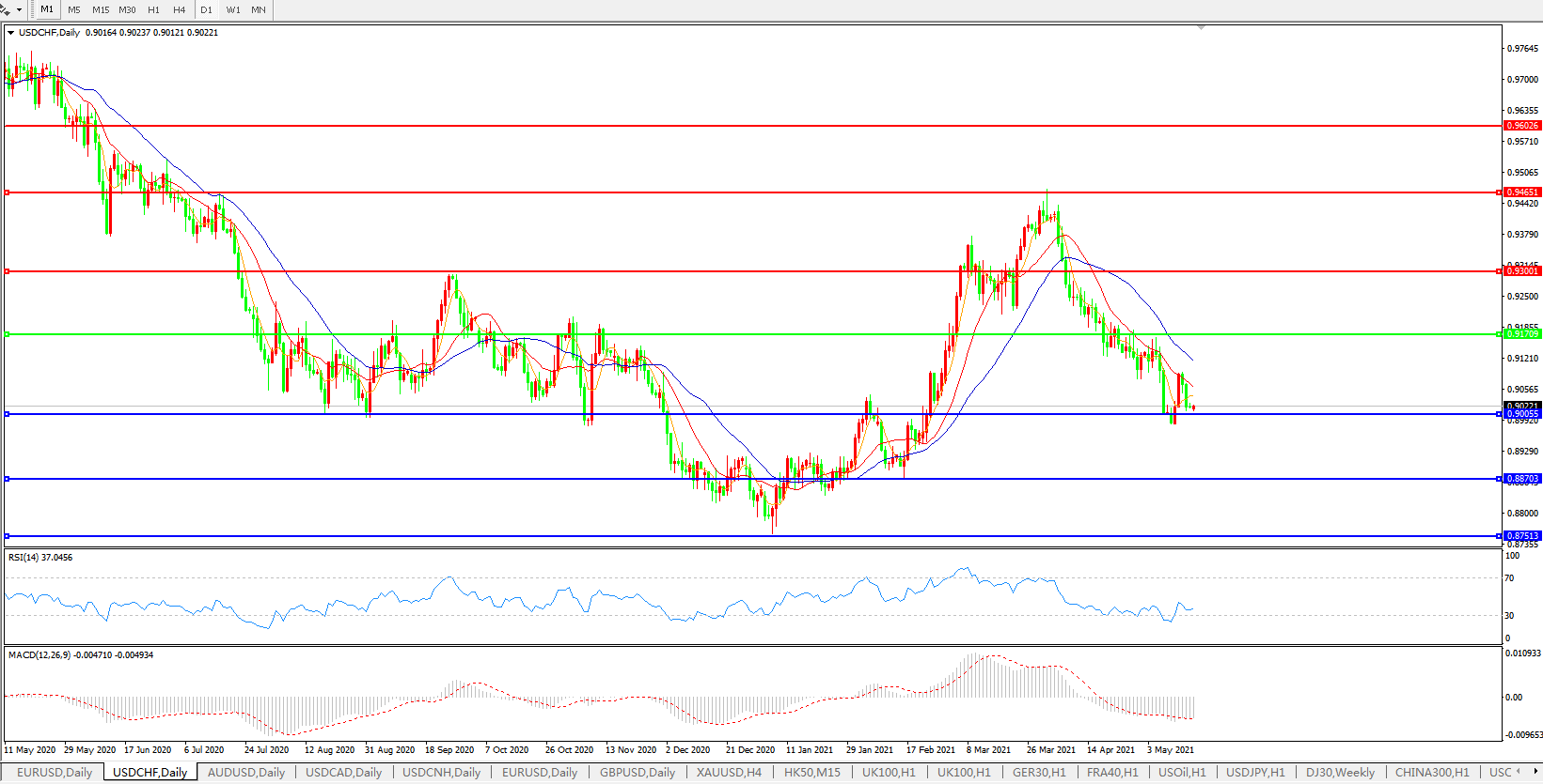 美元兑瑞郎USDCHF    日线图: