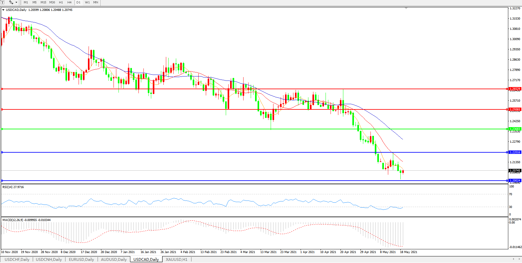 美元兑加元USDCAD 日线图: