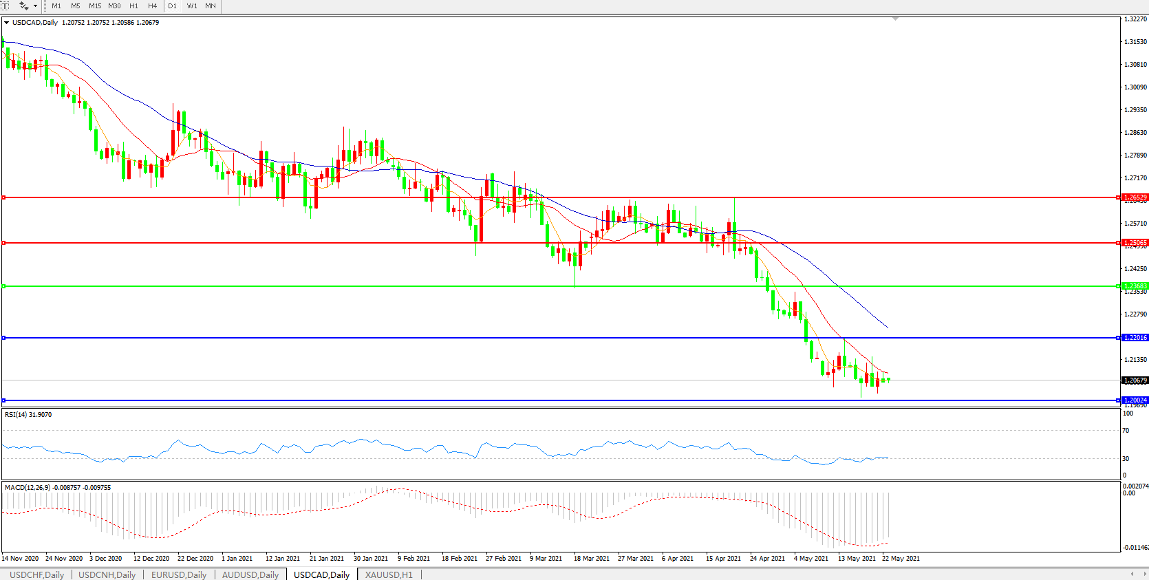 美元兑加元USDCAD    日线图: