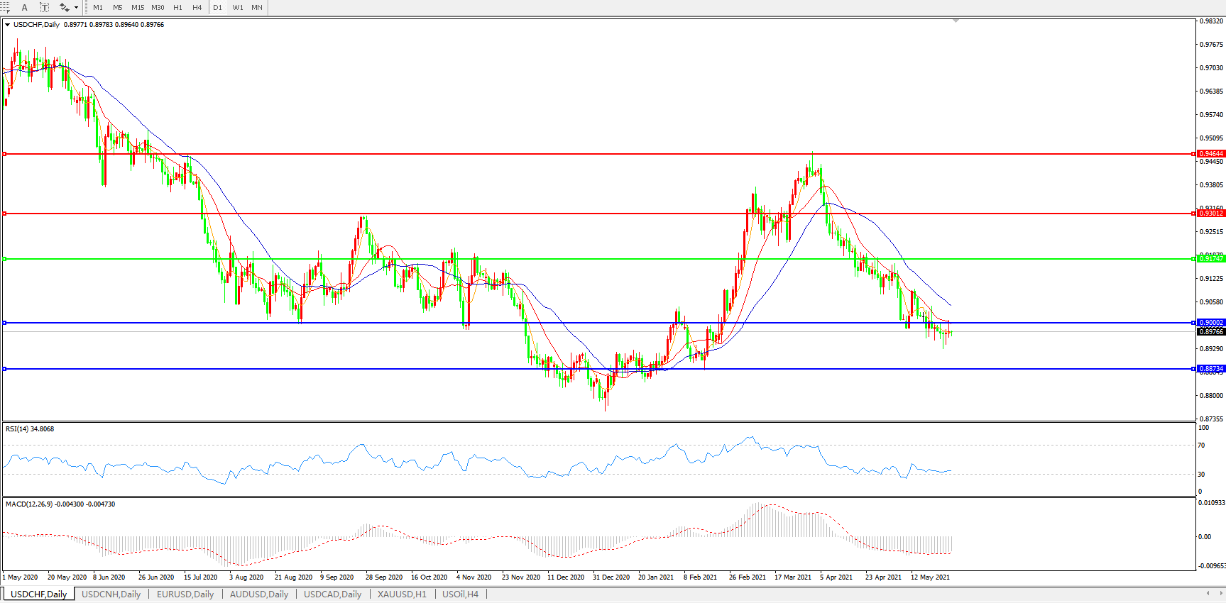 美元兑瑞郎USDCHF    日线图: