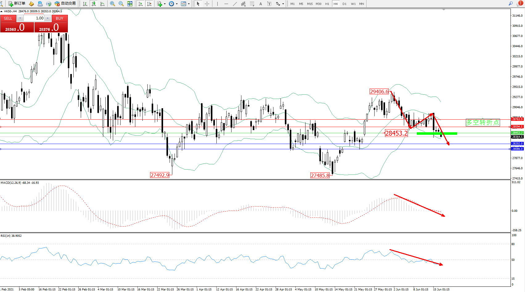 香港恒生指数6月16日(周三)收盘下跌201.69点,跌幅0.7%,报28436.84点;港股主要指数全线收跌,三大指数均呈单边下跌行情,盘中无明显反弹走势,市场情绪表现较差。恒生科技指数跌1.64%报7830点。大型科技股美团跌4.5%,快手、阿里巴巴、腾讯、小米均下跌;惟石油股、银行股、餐饮等少数板块逆势走强。时代天使上市首日暴涨131.79%,市值超660亿港元。今日大市成交额为1383亿港元,南下资金净流出6.84亿港元。南下资金今日净卖出26.36亿港元。港股通(沪)方面,美团净卖出5.09亿港元,腾讯控股净卖出3.66亿港元。港股通(深)方面,美团净卖出6.42亿港元,小米集团净卖出3.59亿港元。港交所行政总裁欧冠升发文称,香港交易所在新经济融资(包括生物科技融资)方面还有巨大的潜力。新经济公司代表着未来经济发展的方向。新冠疫情让医疗卫生成为全球关注的焦点,港交所有责任推动这一行业的健康发展。后续还将不断吸引来自中国和其他全球各地的生物科技公司来上市,为投资者创造机遇。