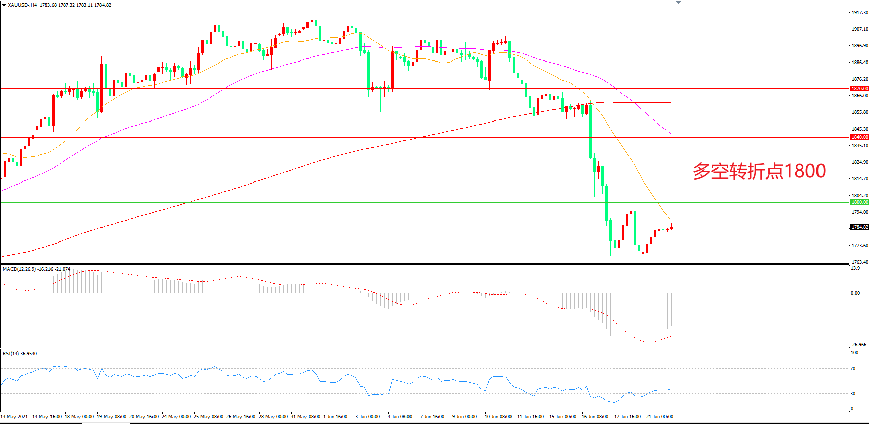 交易策略:在1800.00之下看跌,目标1760.00       1730.00