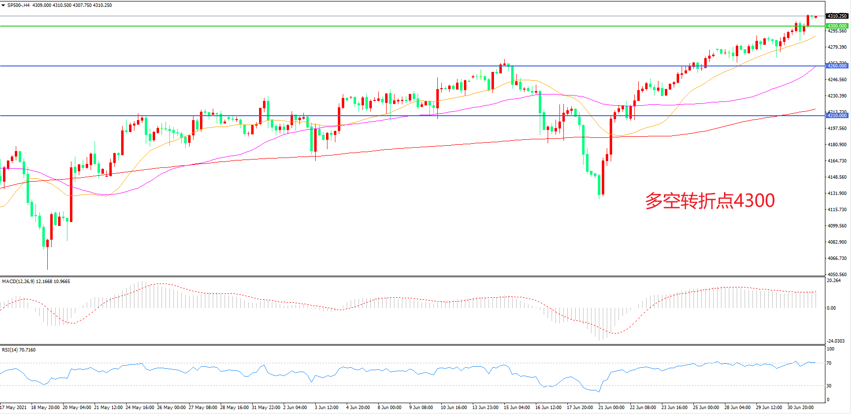 多空转折点:4300.00