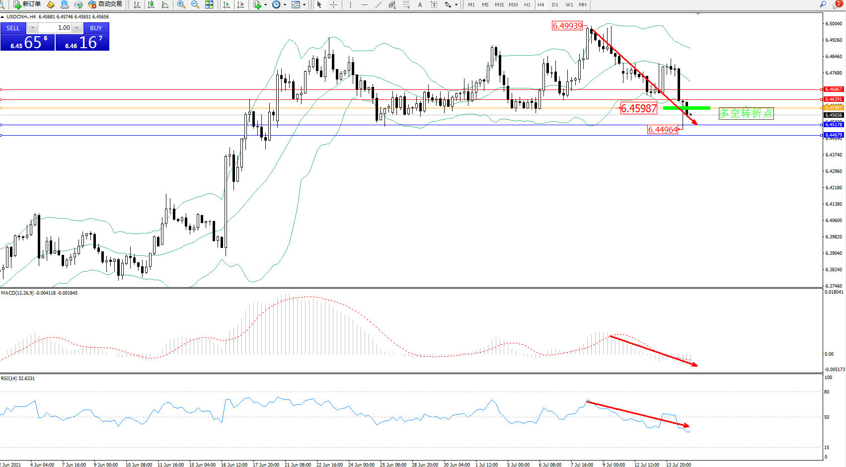 交易策略:6.45987下方看跌,目标6.45178、6.44679