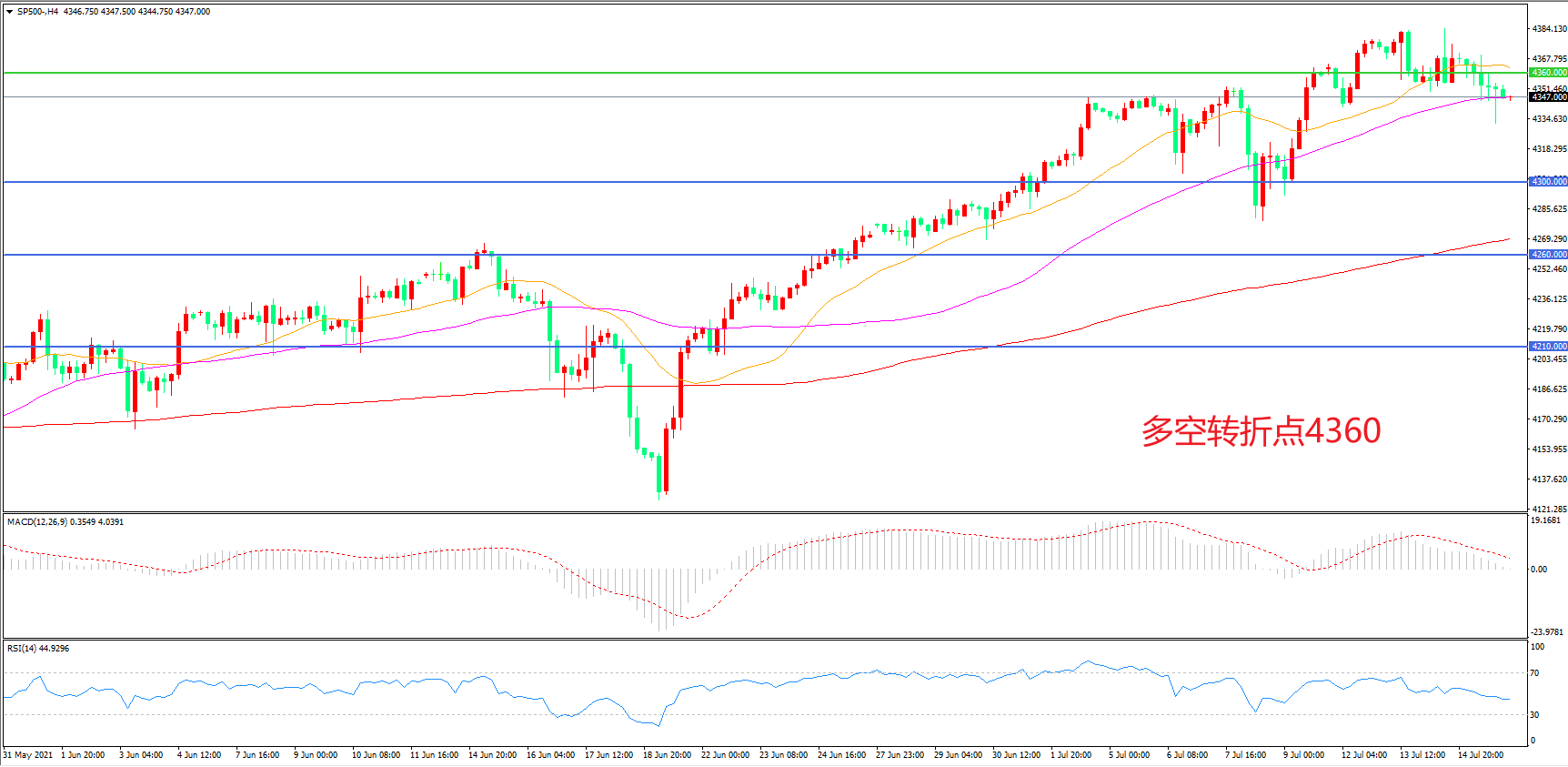 备选策略:在4360.00之下看跌,目标4300.00    4260.00