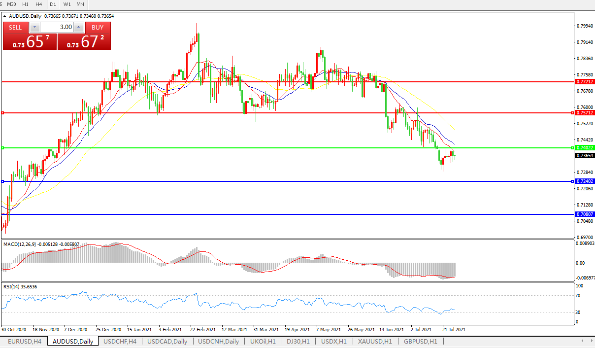 交易策略:0.7400下方看跌,目标0.7240、0.7080