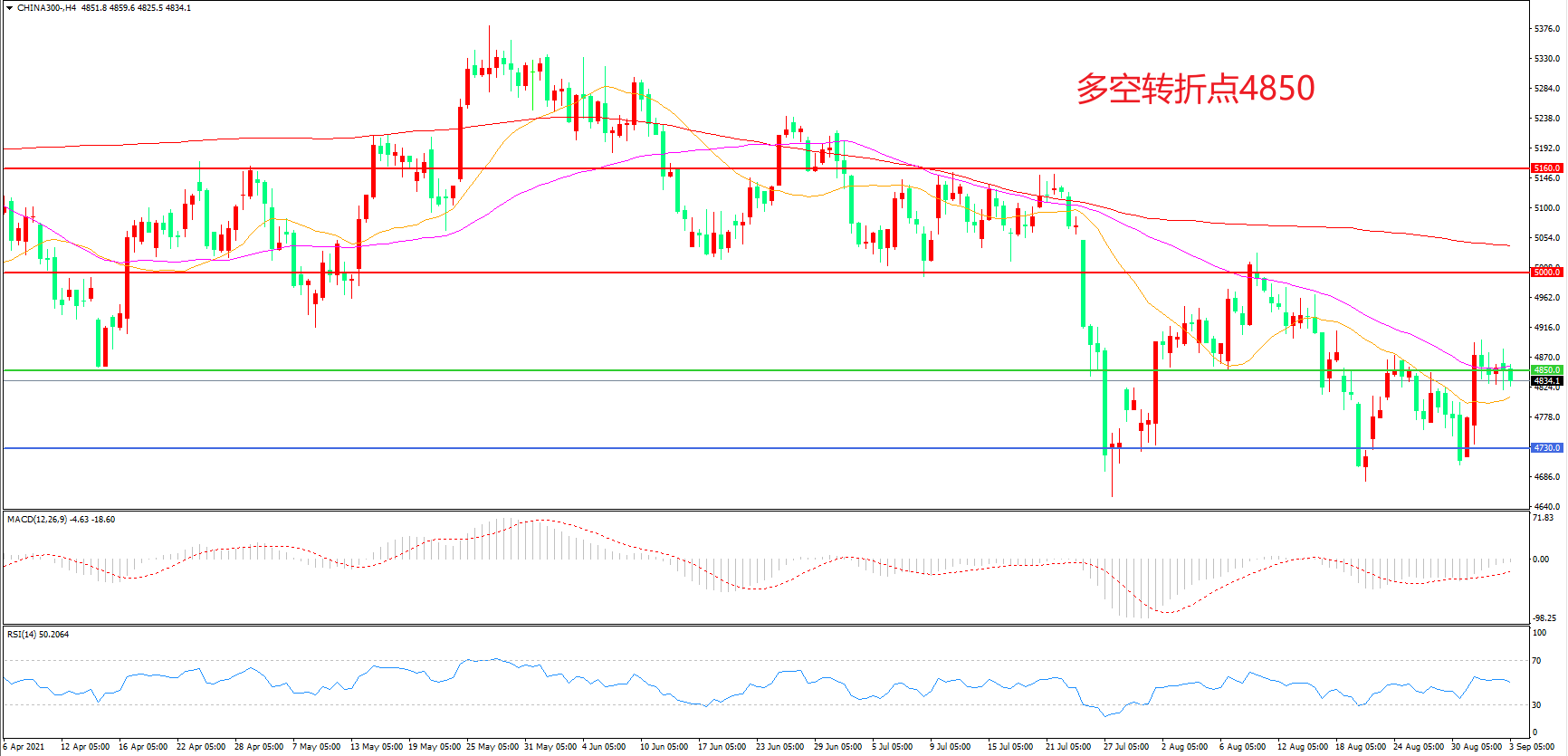 多空转折点:4850.00
