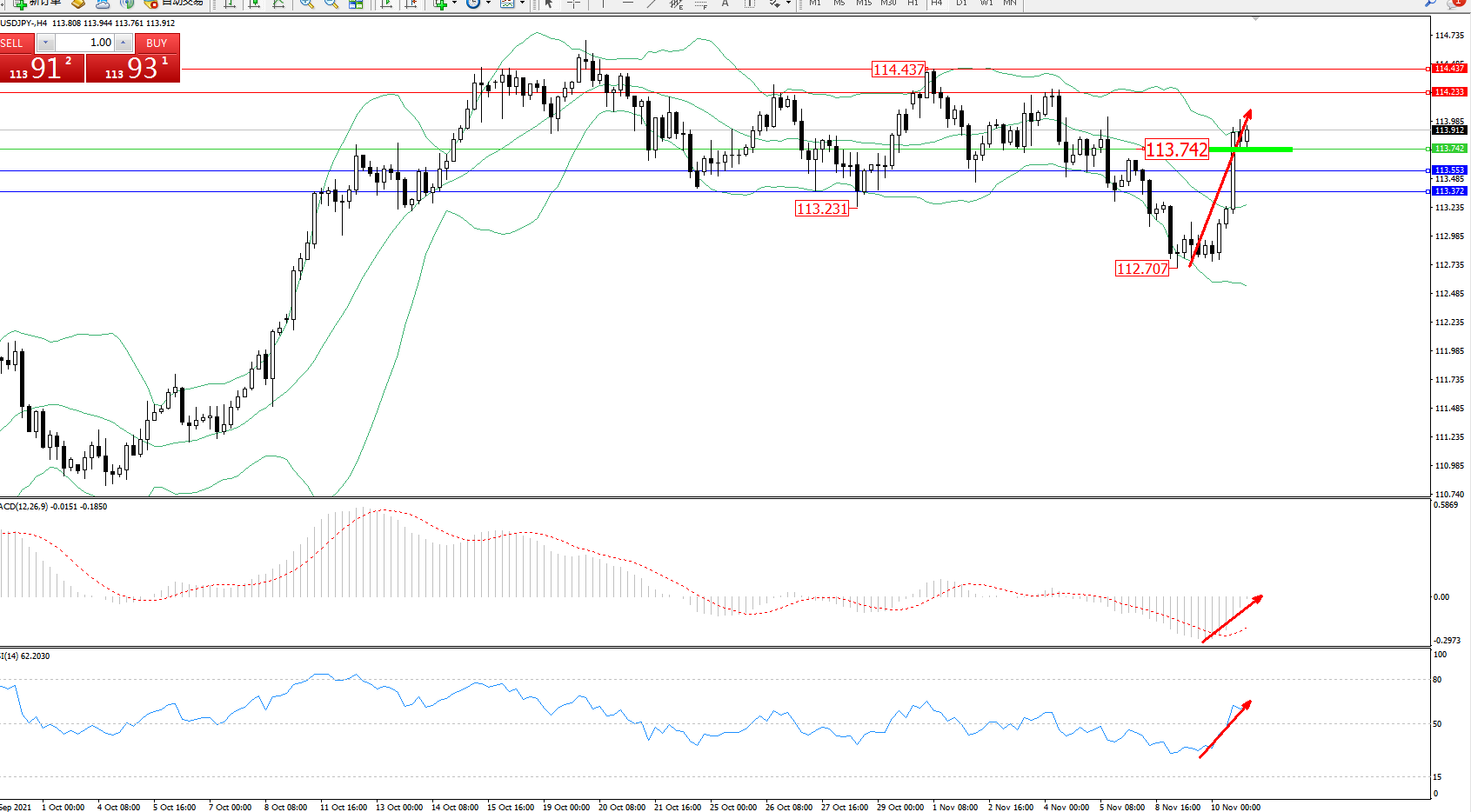 美元兑日圆强势拉升至113.897附近震荡,在押注日本央行在收紧政策上将落后于其他央行的情况下,做空日元已成为外汇市场的一种热门交易。据美国商品期货交易委员会的数据,杠杆基金日元仓位的看跌程度创2019年1月以来最强,2021年以来日元已累跌8.5%。但这种交易本月一直承压,日元在11月迄今上涨约1%,是G10货币中涨幅最大的。盛宝银行外汇策略主管John Hardy表示,在全球长期避险资产收益率大幅下降之际,日元正在上行,并在“挑战投机性头寸”。要想从9月水平的跌势“适当扭转”,那么美日将需要突破112,甚至可能触及111.25。