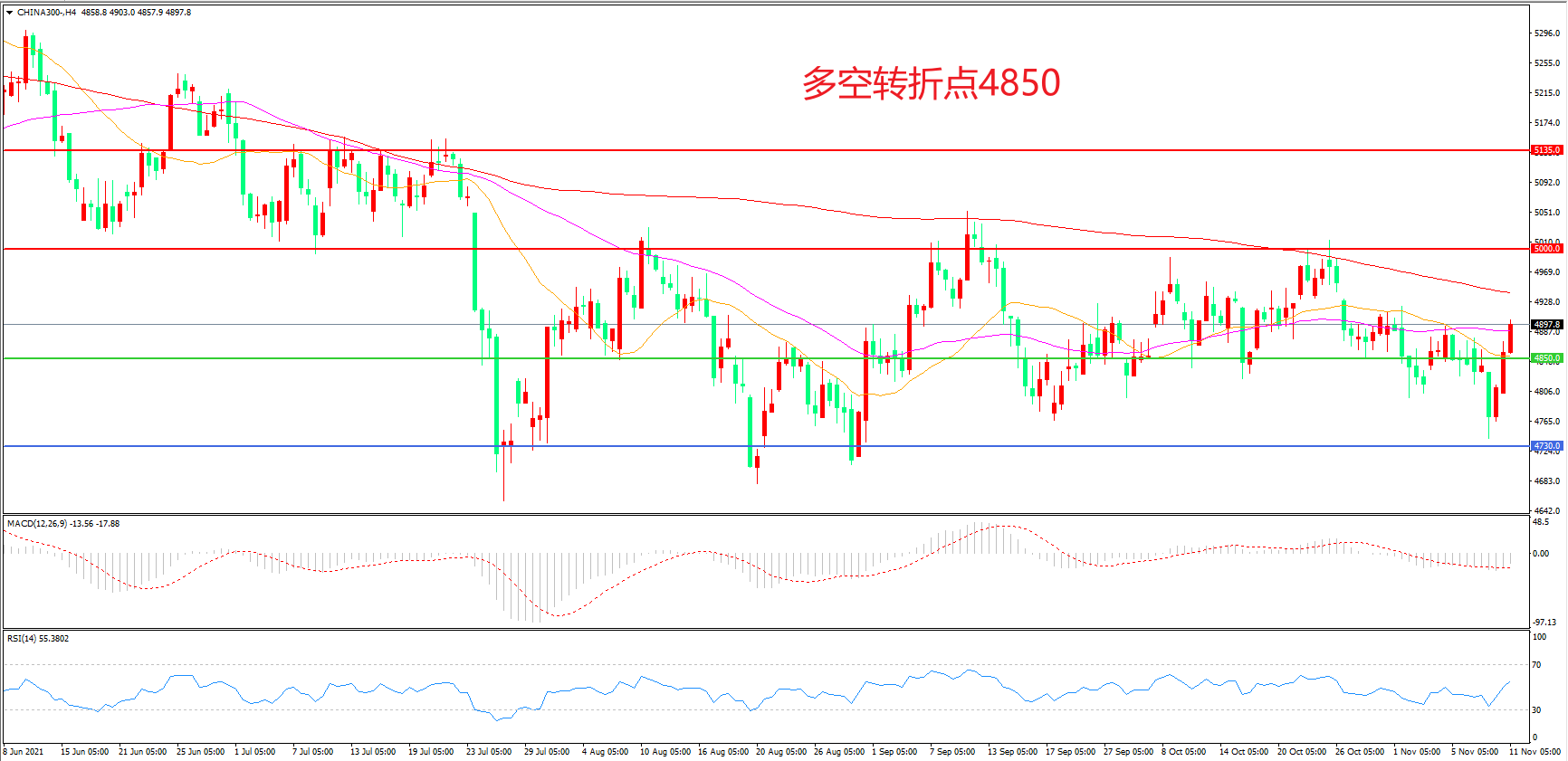 多空转折点:4850.00