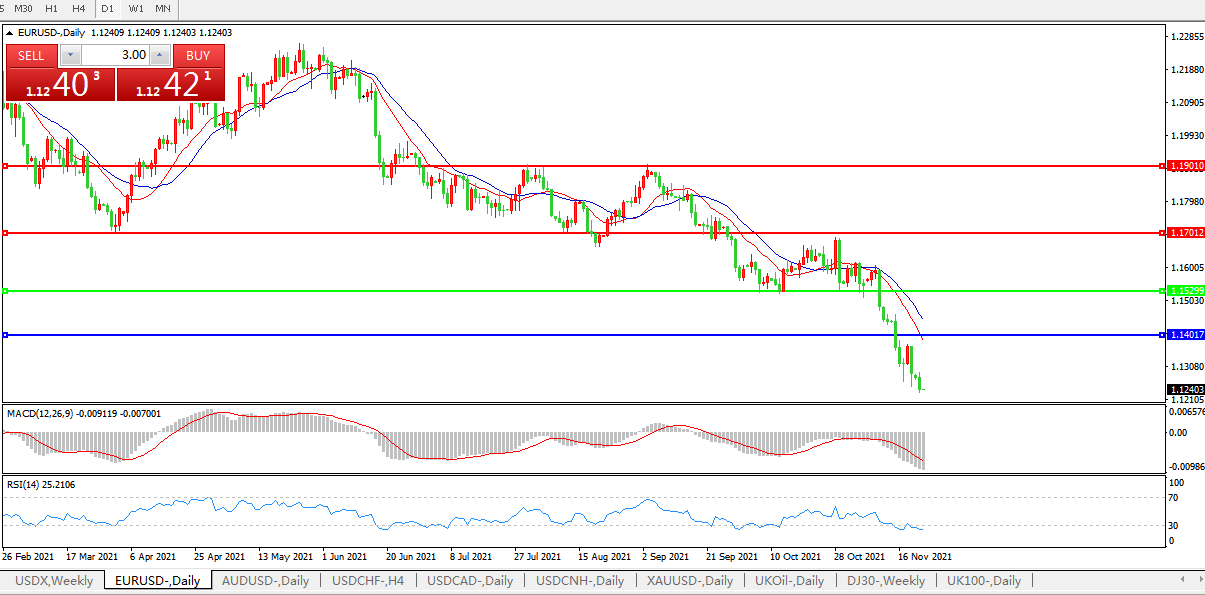 欧元兑美元跌至2020年7月以来最低水平,因市场考虑疫情复燃引发欧洲进一步封锁的风险。欧元兑美元跌0.47%至1.1237,美国感恩节假期前的获利回吐缓解了跌势;1.12期权障碍可能提供进一步支撑。对欧洲新的限制措施的担忧加剧,奥地利进入另一次全面封锁,德国也考虑效仿,这也拖累欧元走低。