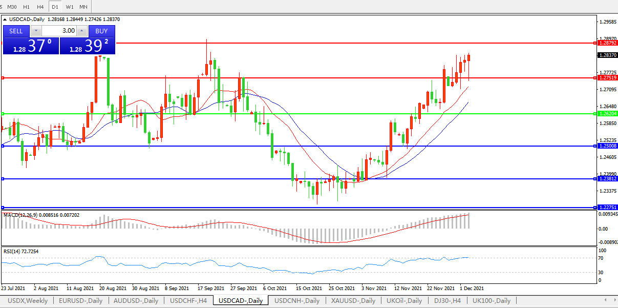 美元兑加元USDCAD    日线图:
