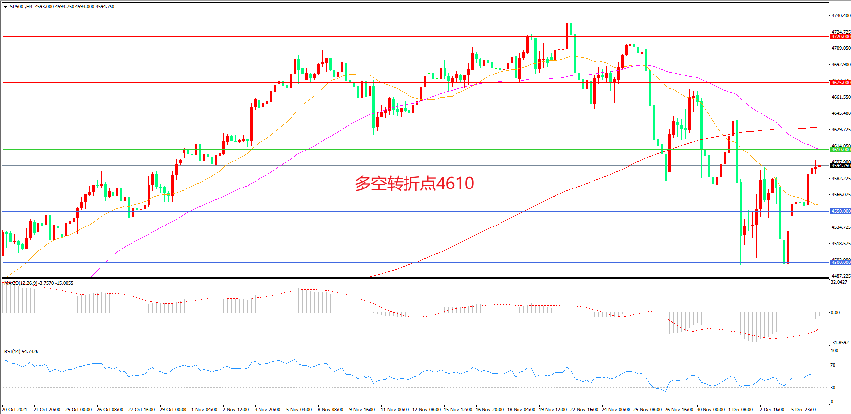交易策略:在4610.00之下看跌,目标4550.00    4500.00