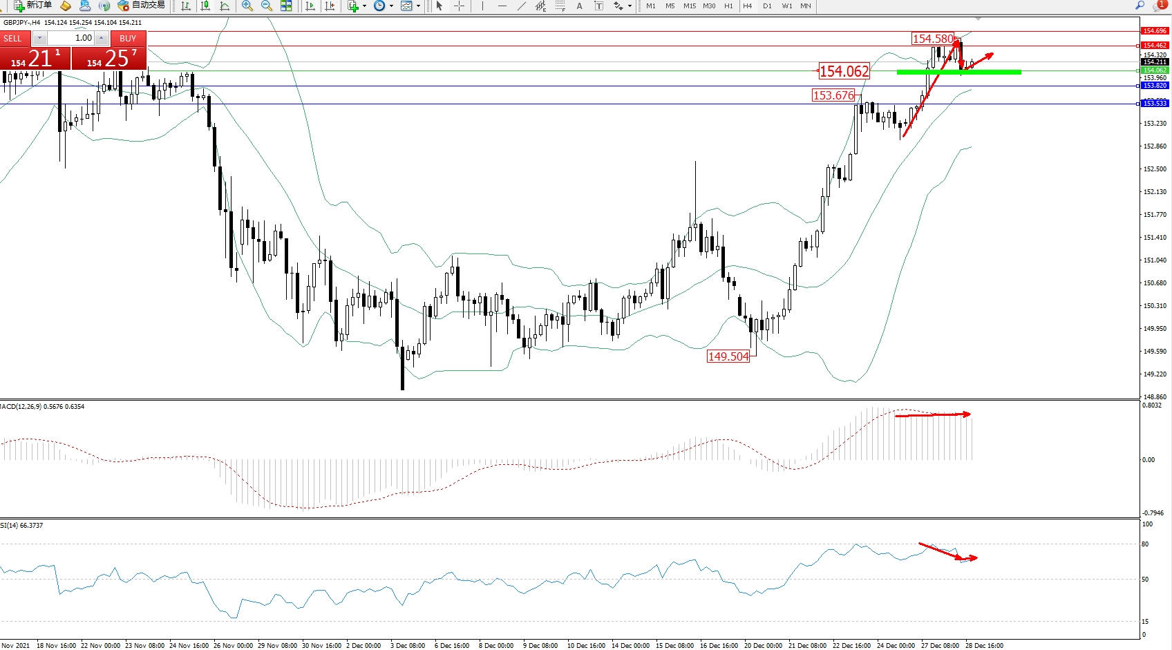英镑兑日圆维持154.211附近震荡,英国市场本因由于年底假期而趋于平淡,但继12月加息后,市场普遍预期英国央行将在2022年进一步加息,市场对英国央行的加息预期一直在缓慢上升。与此同时,人们乐观地认为,奥密克戎变异株不会导致严重的疾病,也不需要实施严格的限制措施,因此,尽管病例数量不断上升,但与奥密克戎变异株相关的死亡病例在英国相对较低。