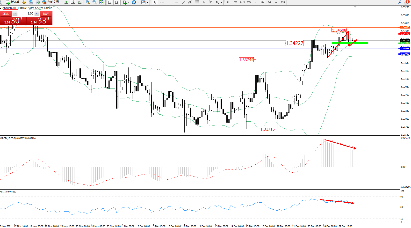 备选策略:1.34227下方看跌,目标1.34065、1.33909
