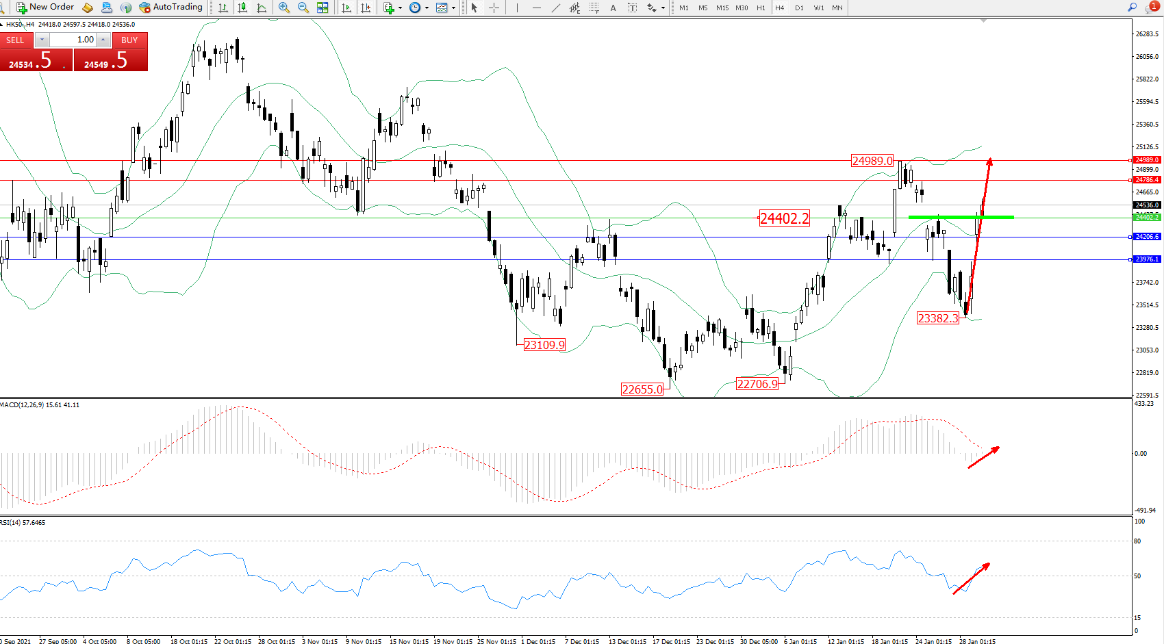 香港恒生指数2月4日(周五)收盘上涨771.03点,涨幅3.24%,报24573.29点;港股虎年开市首日三大指数全天强势,创2009年春节首日开市以来最大涨幅;恒生科技指数涨3.05%,报5581点;盘中一度站上8600点。大市全日成交额1139亿港元。 大型科技股集体大涨,百度涨近6%、阿里巴巴涨超5.5%,哔哩哔哩涨超2.5%,美团涨3%,快手涨1%。大型科技股集体大涨,百度涨近6%、阿里巴巴涨超5.5%,哔哩哔哩涨超2.5%,美团涨3%,快手涨1%。香港交易所今早进行内部新春开市仪式,迎接虎年首个交易日,港交所主席史美伦指,过去一年香港面对不同的挑战,感谢各界努力不懈,为香港金融市场稳步发展作出贡献。她强调,港交所将继续发挥市场领导者角色,提升市场结构,促进绿色金融、互联互通等发展,为业界及投资者带来更多投资机会。集团行政总裁欧冠升表示,展望虎年,香港将在推动相互依存的全球资本市场快速发展上发挥重要作用,交易所将持续促进中国与世界双向资本流动,同时把握所有塑造香港市场及社会大趋势的机遇。