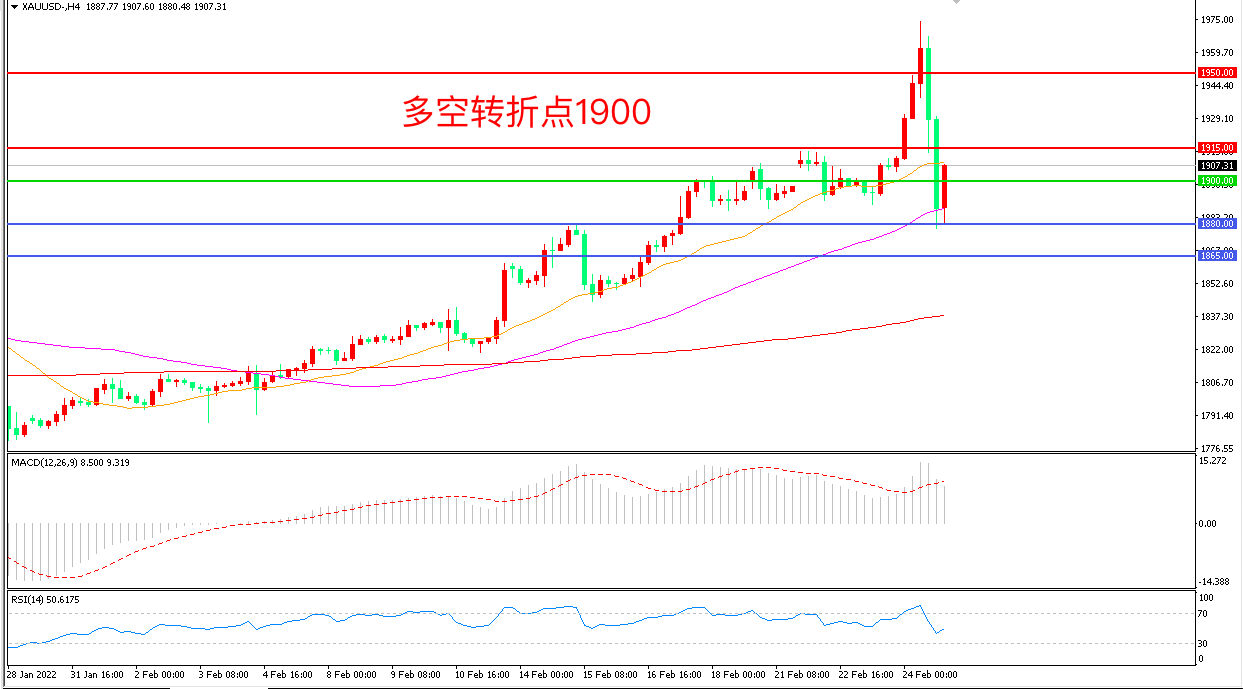 备选策略:在1900.00之下看跌,目标1880.00       1865.00