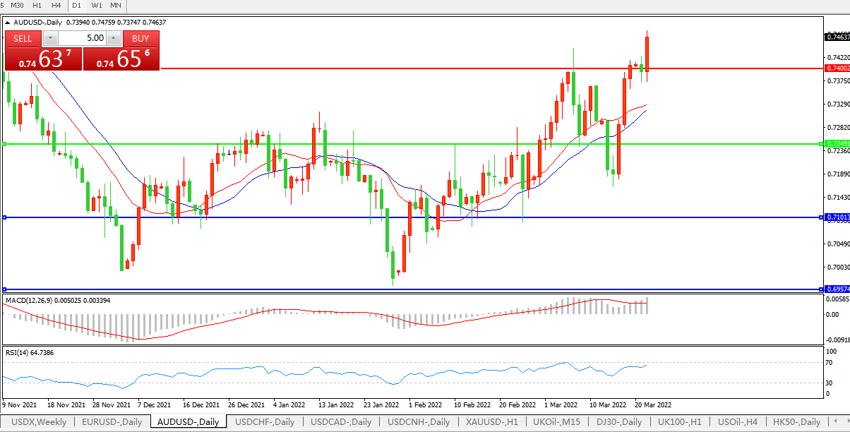 压制位:0.7400 0.7550