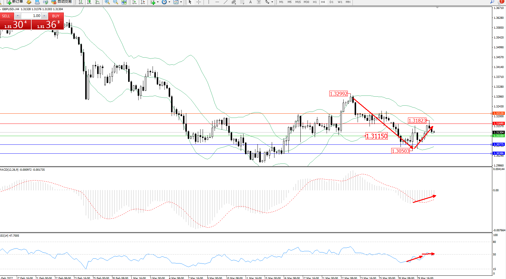交易策略:1.31150上方看涨,目标1.31680、1.32120