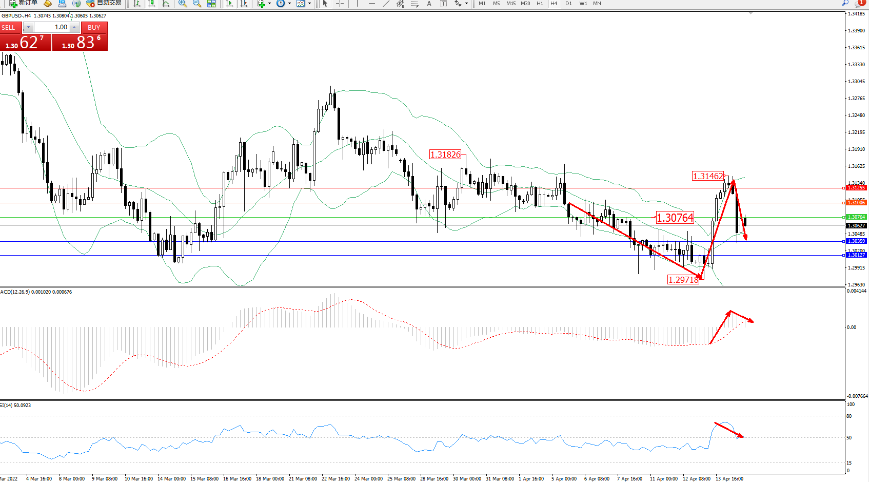 交易策略:1.30764下方看跌,目标1.30359、1.30127