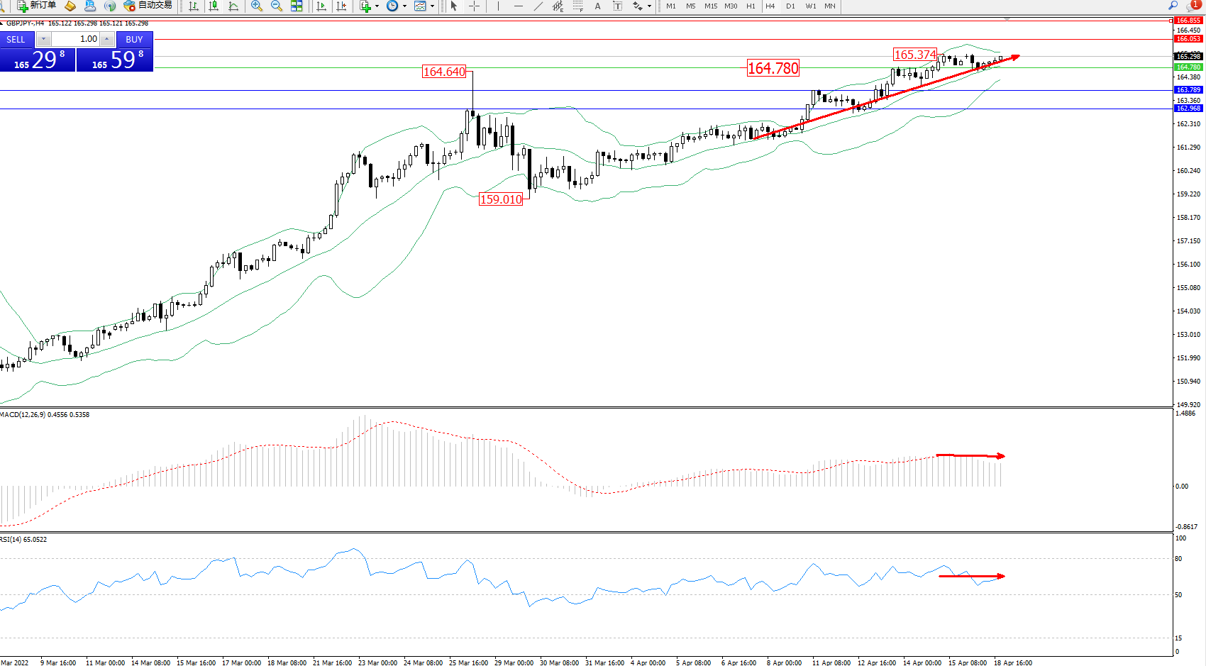 交易策略:164.780上方看涨,目标166.053166.855