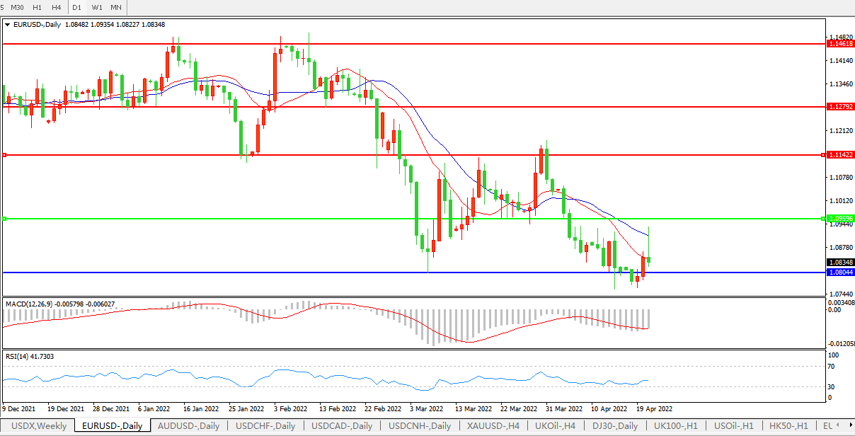 欧元从逾一周高位回落,欧元兑美元尾盘下跌0.2%,至1.0831美元,此前触及1.0936美元,为4月11日以来的最高水平。此前欧洲央行行长拉加德表示,由于俄罗斯在乌克兰的战争影响家庭和企业,欧洲央行可能需要进一步下调增长预期。