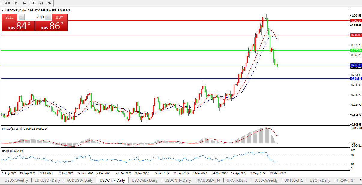 美元兑瑞郎USDCHF    日线图: