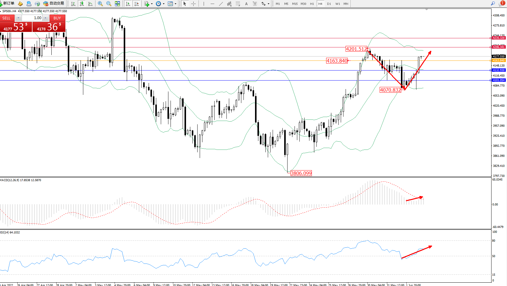 标普SP500——4小时K线图显示: