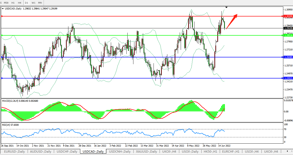 美元兑加元USDCAD 日线图: