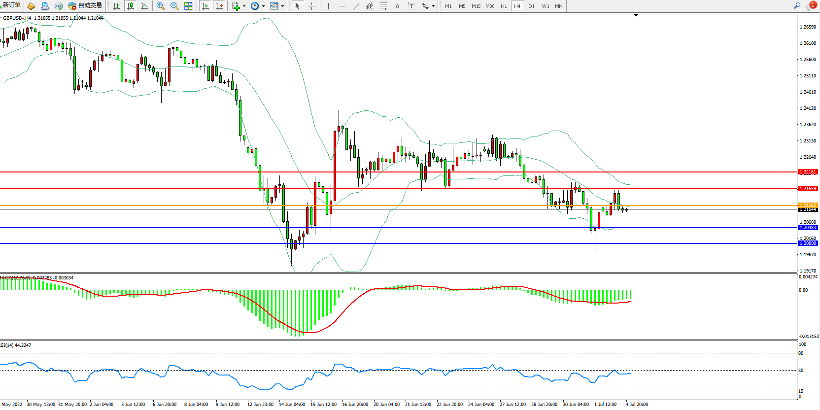 英镑美元GBPUSD ——4小时K线图显示: