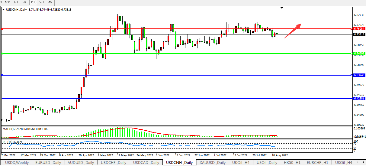 交易策略:在6.6420之上,看涨,目标价位为6.7600、6.8870