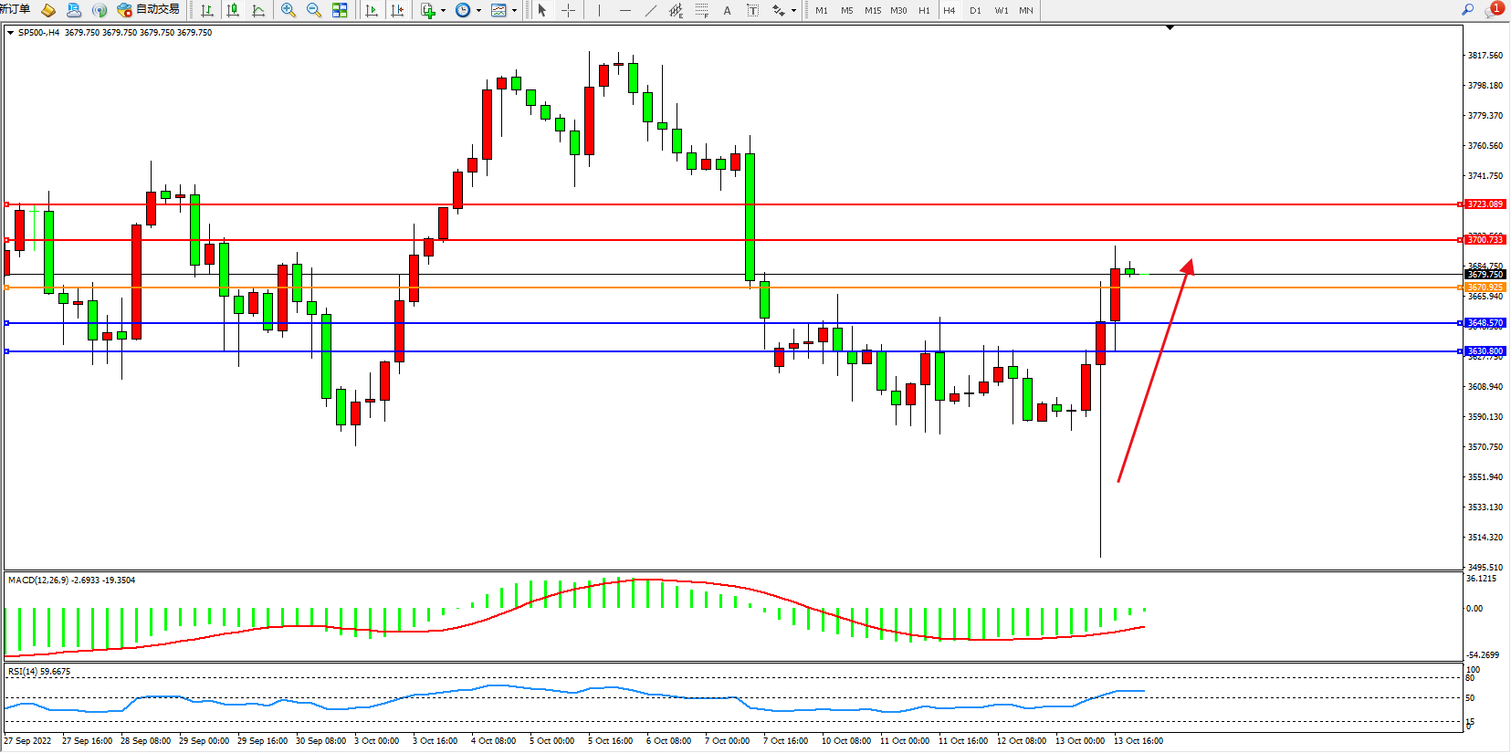 标普SP500——4小时K线图显示:
