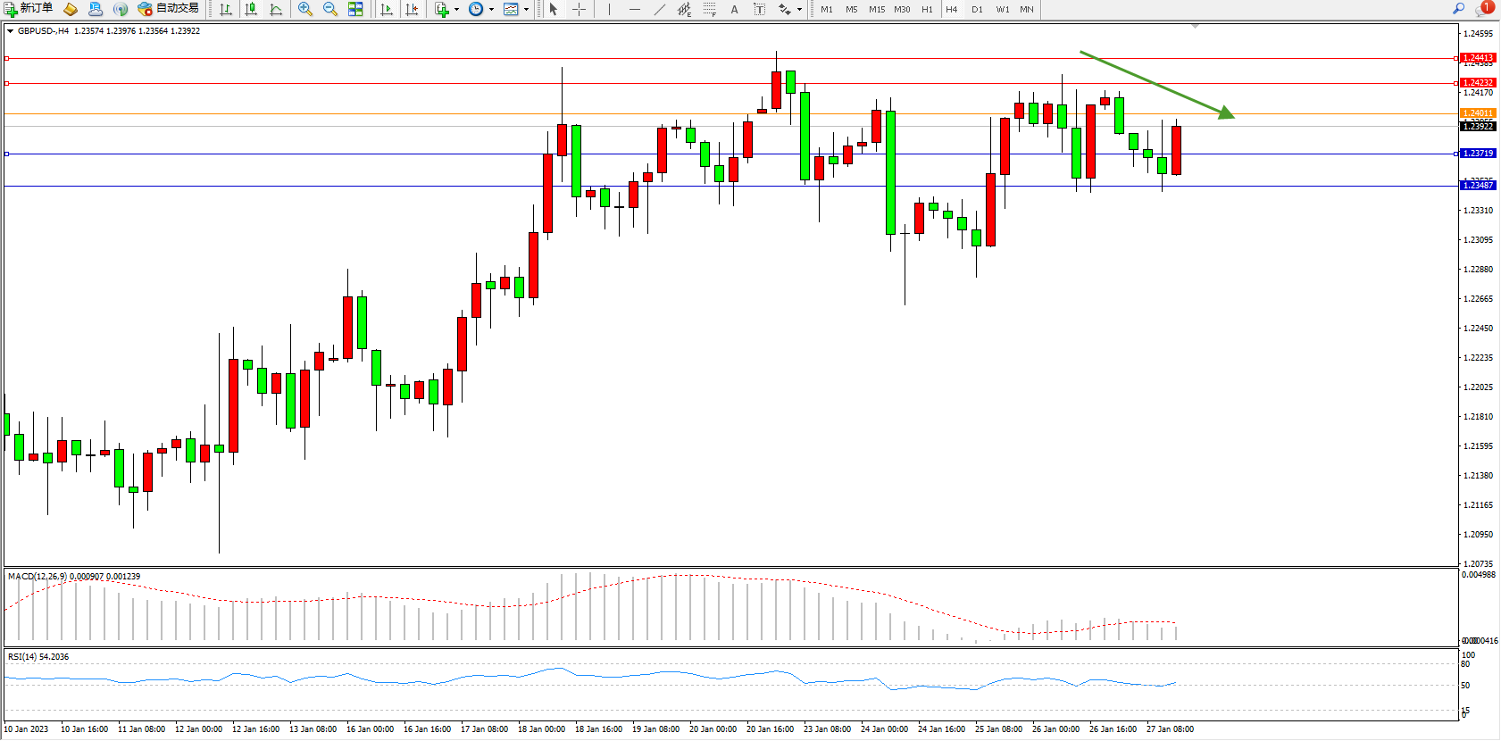 英镑美元GBPUSD ——4小时K线图显示: