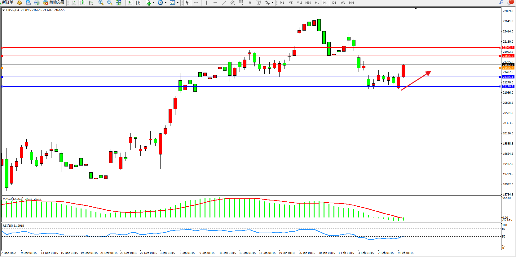 恒指HK50 4小时图